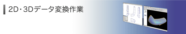 異なるCADソフト間で、フォーマットの違いにより発生するトラブルはつきものです。 『お客様より入手した2D図面データ、3Dデータが自分のCADソフトで開かない!』 『もらったデータの拡張子が、対応していない!』 『開けたものの、中でデータがごちゃごちゃしている!』 など2Dデータおよび3Dデータの問題を解決するお手伝いをしております。 それぞれ各種フォーマットへデータ変換できますのでご相談下さい。